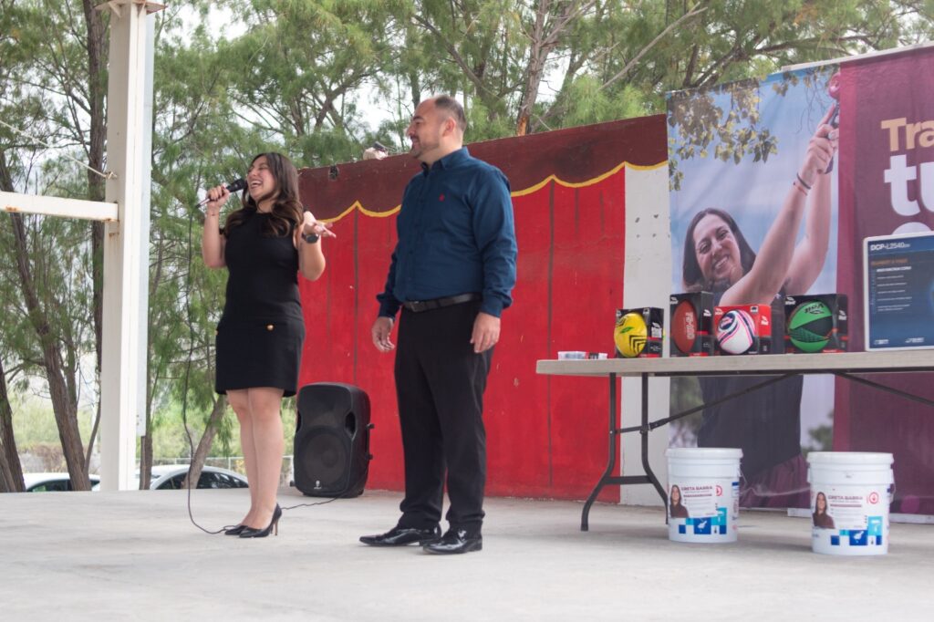 Al atender los reportes y las necesidades de la comunidad estudiantil de García, la diputada local Greta Barra, implementó el programa “Transformando tu escuela”, mediante el que hizo entrega de pintura, equipo de oficina y material deportivo, a la Escuela Primaria “Lic. Miguel Alemán”, en el ejido Rinconada.