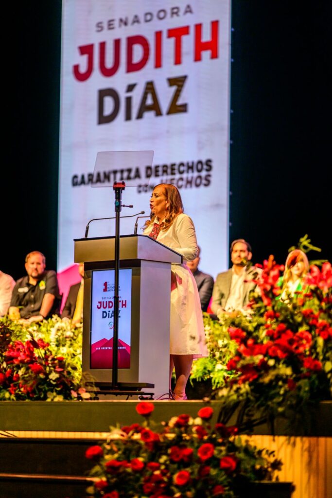 La Senadora Judith Díaz presentó su primer informe de actividades en un acto abierto y cercano a la ciudadanía, acompañada por alcaldes, diputadas y diputados locales, legisladores federales, compañeros Senadores, empresarios quienes respaldaron su labor y los resultados presentados durante su primer año de trabajo.